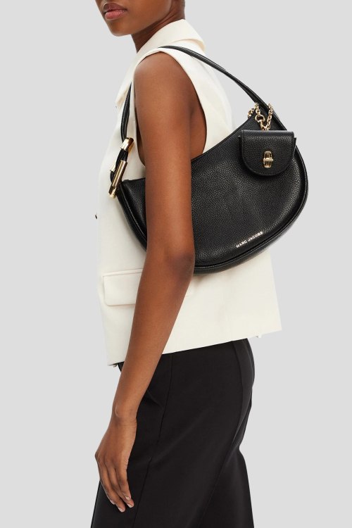 Детали: Женская черная кожаная сумка хобо The Dual Hobo Bag от Marc Jacobs (Марк Джейкобс). Модель из зернистой кожи, логотип спереди, золотистая фурнитура, съемный кошелек, застежка-молния, одно отделение. Размеры: 26 x 16 x 8 см