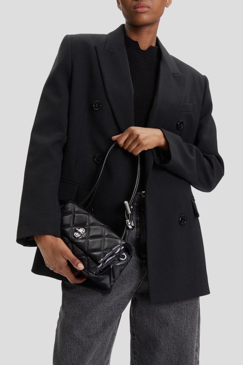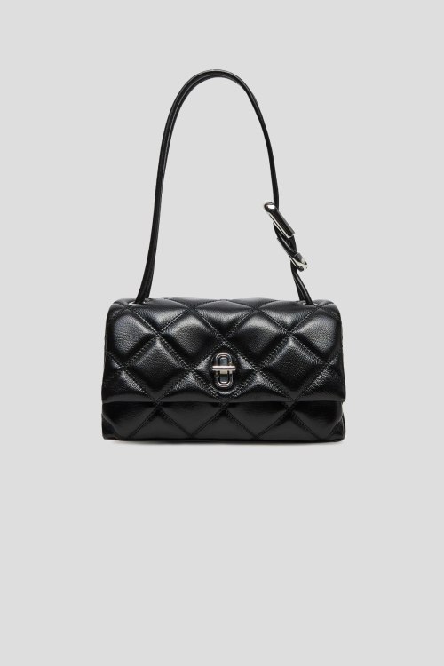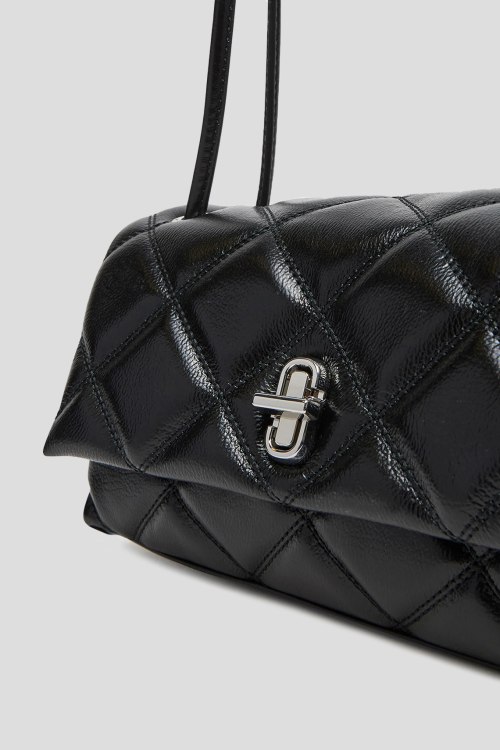 Детали: Женская черная кожаная сумка на плечо The Quilted Dual от Marc Jacobs (Марк Джейкобс). Стеганый дизайн, серебристая фурнитура, поворотный замок, круглая ручка, одно отделение. Размеры: 22 x 11 x 11 см