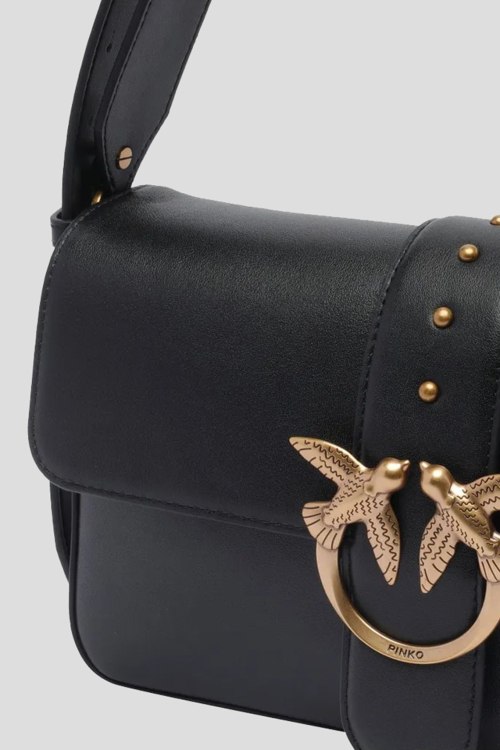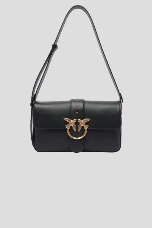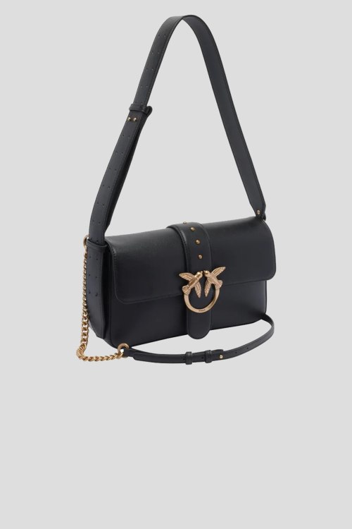 Детали: Женская черная кожаная сумка на плечо Classic Love Bag One Simply от Pinko (Пинко). Модель из гладкой кожи, значок Love Birds, золотистая фурнитура, застежка на магнит, одно отделение, регулируемый плечевой ремень. Размеры: 15,5 x 27 x 7 см