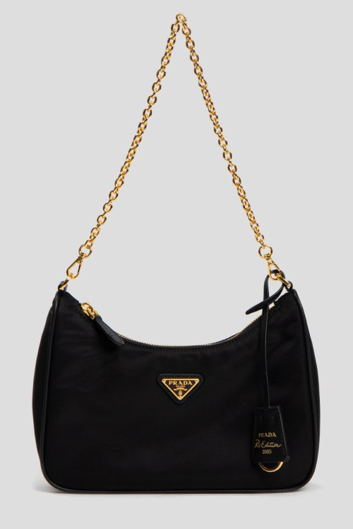 Детали: Женская черная текстильная сумка Re-Edition 2005 от Prada (Прада). Одно отделение, застежка на молнию, внутренний карман на молнию, съемный плечевой ремень, патч-лого, брендированный брелок. Замеры (ШхВхГ): 23х16х6 см