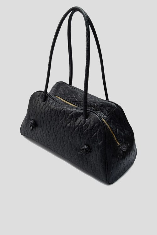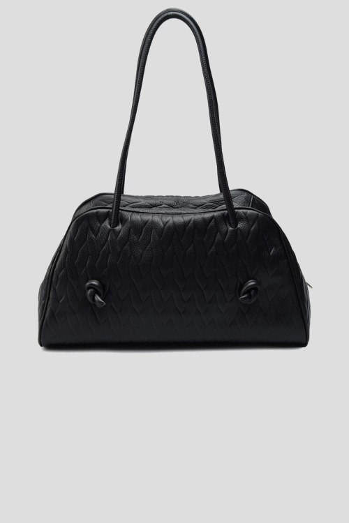 Детали: Женская черная кожаная сумка на плечо Alina от Roberta Gandolfi (Робэрта Гандолфи). Модель из зернистой кожи, узор с тиснением по всей поверхности, золотистая фурнитура, две ручки, застежка-молния, одно отделение, внутренний карман на молнии. Размеры: высота: 23 см, ширина: 39 см, высота ручек: 29 см, ширина по дну: 12 см