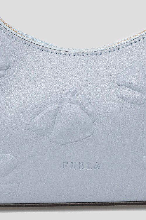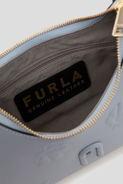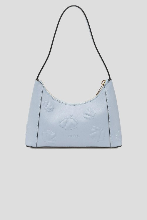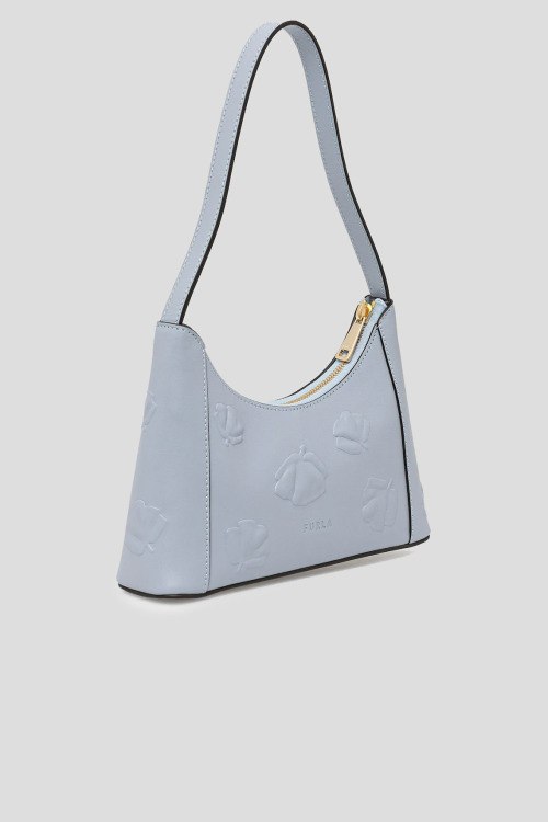 Детали: Женская голубая кожаная сумка на плечо Diamante от Furla (Фурла). Модель из гладкой кожи, золотистая фурнитура, логотип в тон изделия, тисненый узор, застежка-молния, одно отделение, круглая ручка на плечо. Размер: 24 х 17 х 6 см