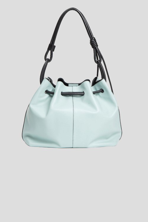 Детали: Женская голубая сумка на плечо из натуральной кожи от Roberta Gandolfi (Робэрта Гандолфи). Два отделение, карман-перегородка на молнии, застежка на магнит и кулиску, плечевая несъемная ручка. Измерения: ширина: 39 см, высота: 28 см, глубина: 15 см