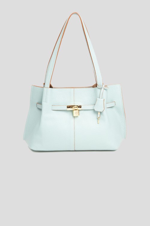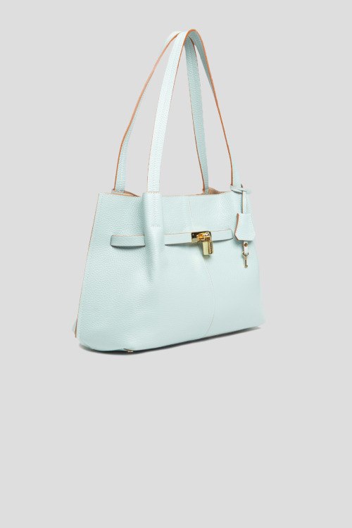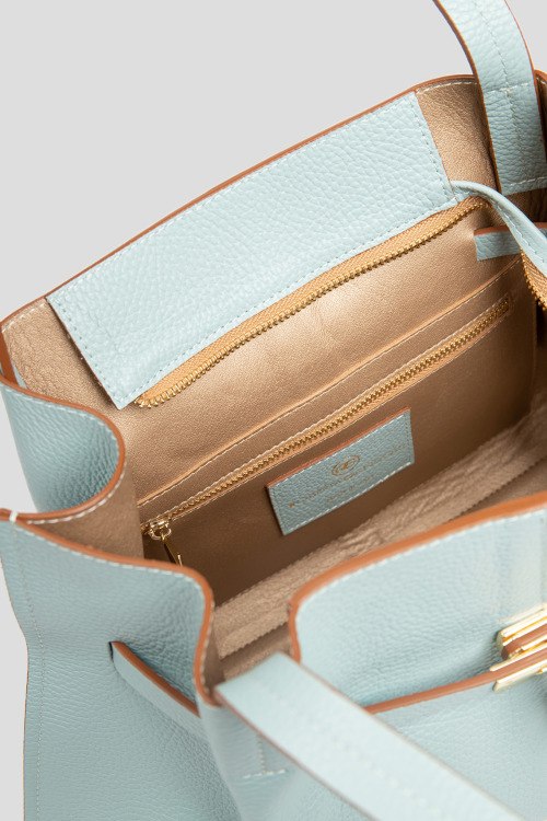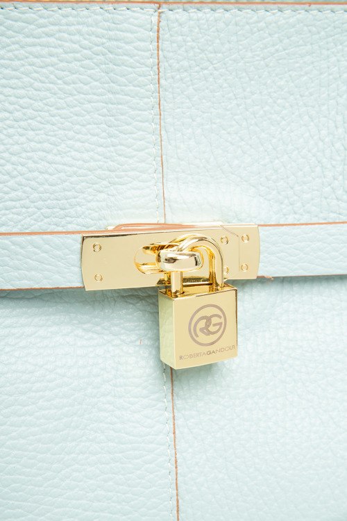 Детали: Женская голубая сумка на плечо из натуральной кожи от Roberta Gandolfi (Робэрта Гандолфи). Одно отделение, застежка на молнию, внутренний карман на молнии, металлическая фурнитура золотистого цвета, две верхние ручки. Измерения: высота: 26 см, ширина: 40 см, высота ручек: 29 см, ширина по дну: 11 см
