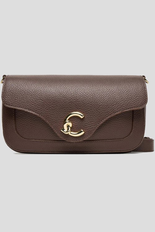 Детали: Женская коричневая кожаная сумка на плечо C-Me от Coccinelle (Кочинелле). Модель из зернистой кожи, значок логотипа, золотистая фурнитура, съемный плечевой ремень, застежка на магнит, два отделения. Размеры: 26 x 16 x 7 см