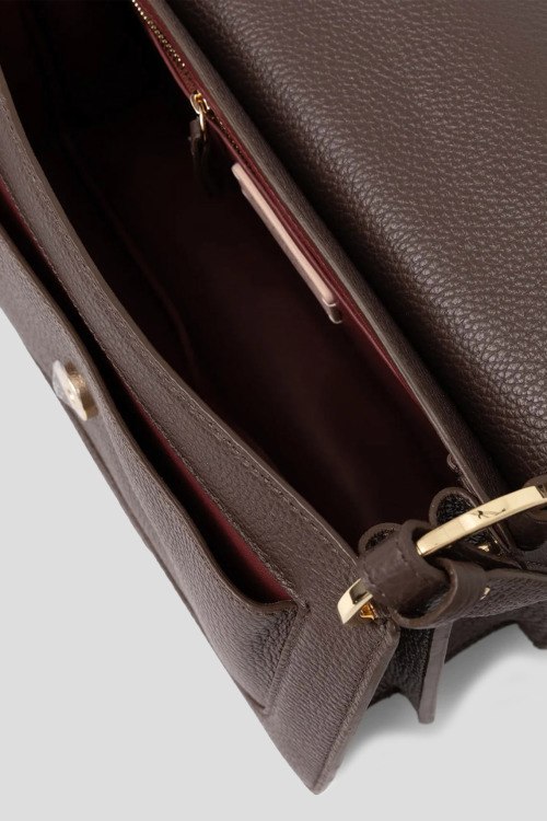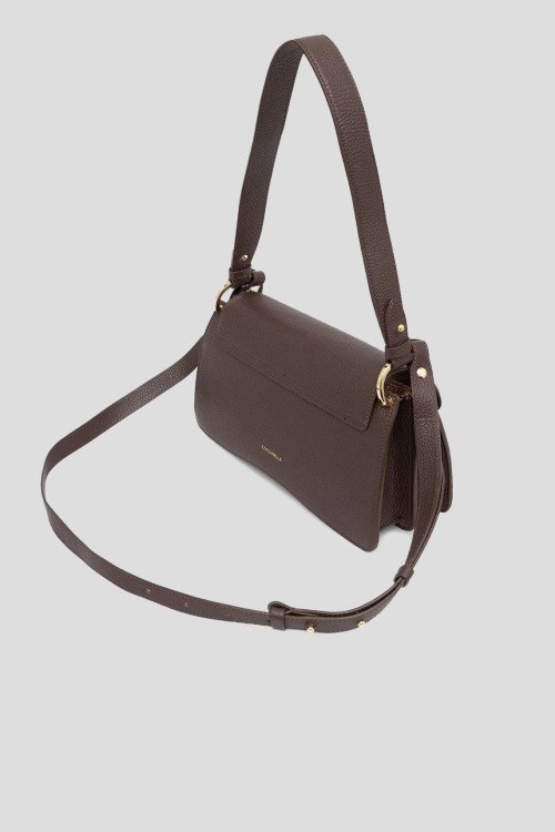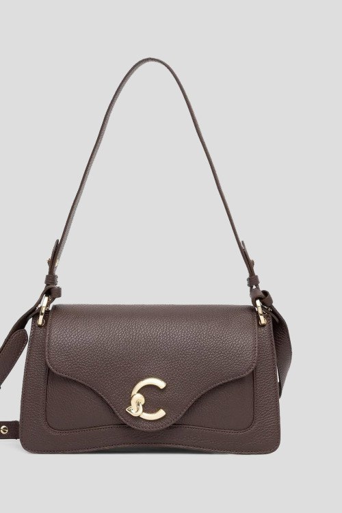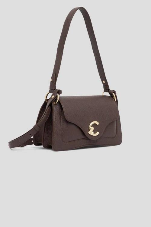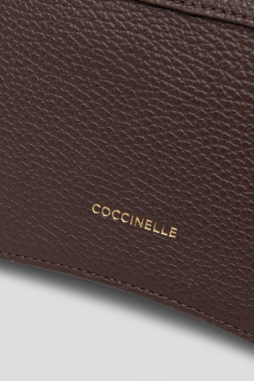 Детали: Женская темно-коричневая кожаная сумка на плечо от Coccinelle (Кочинелле). Модель из зернистой кожи, логотип спереди, золотистая фурнитура, застежка на магнит, одно отделение, два плечевых ремня. Размеры: 28 x 15 x 9.5 см
