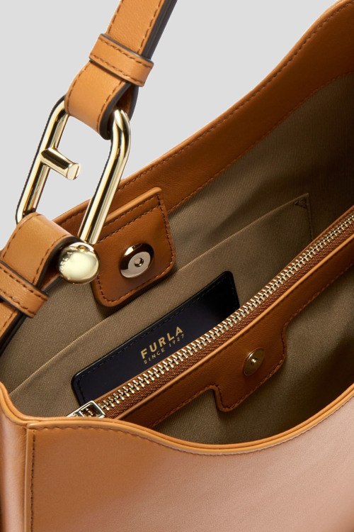 Детали: Женская коричневая сумка на плечо Nuvola из натуральной кожи от Furla (Фурла). Одно отделение, застежка на кнопку, карман на молнии, патч-лого, металлическая фурнитура, несъемная ручка на плечо. Размер: 39x27x10 см