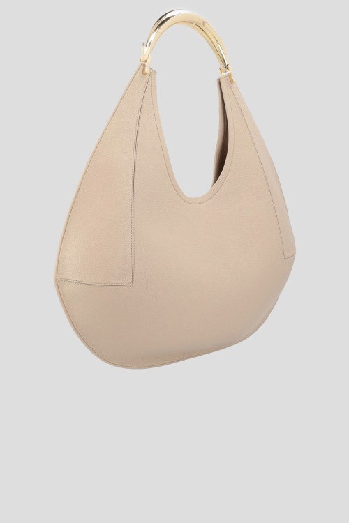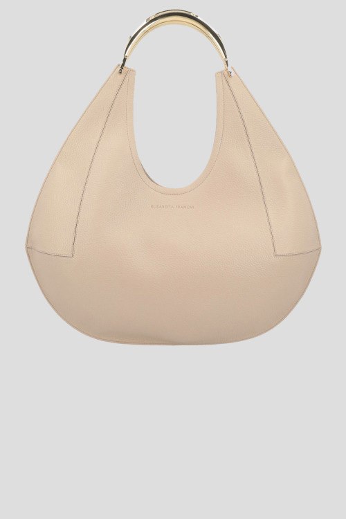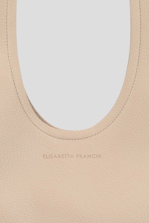 Детали: Женская кремовая сумка хобо из экокожи от Elisabetta Franchi (Елизабетта Франчи). Модель из зернистой кожи, тиснение логотипа, золотистая фурнитура, круглая ручка, одно отделение. Размеры: 51 x 47 см