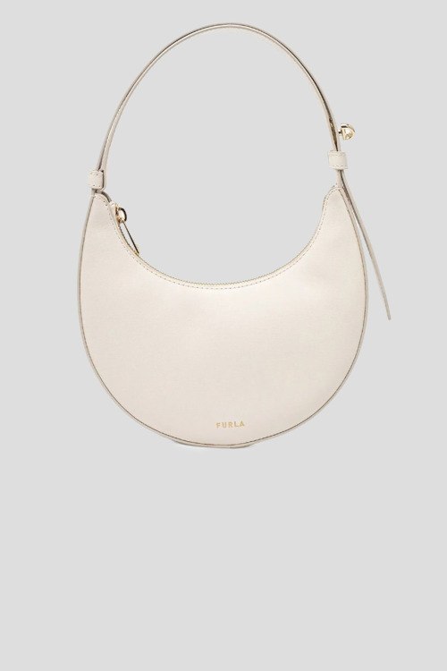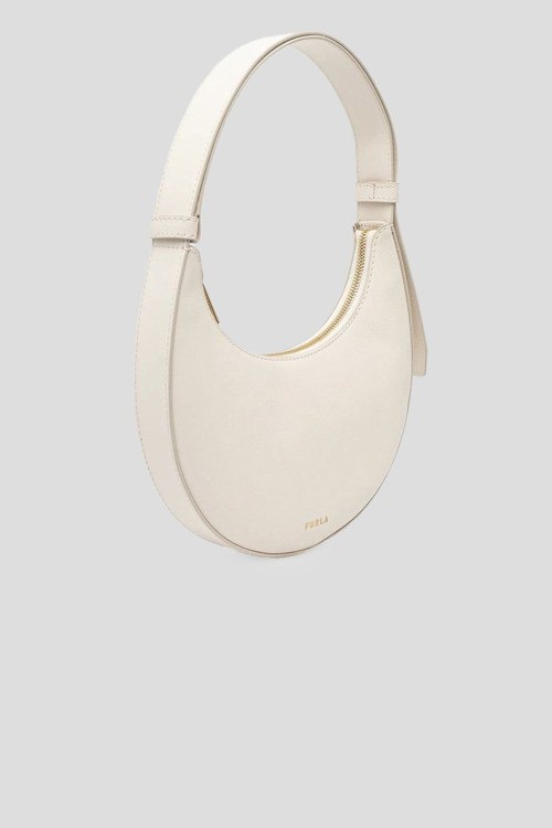 Детали: Женская кожаная сумка хобо молочного оттенка Delizia от Furla (Фурла). Модель из гладкой кожи, логотип спереди, золотистая фурнитура, застежка-молния, одно отделение, плечевой ремень. Размер: 21 х 19 х 3 см
