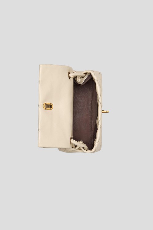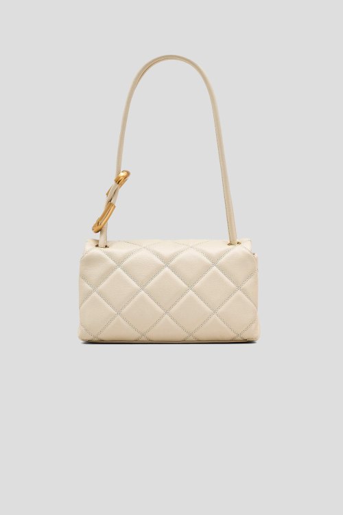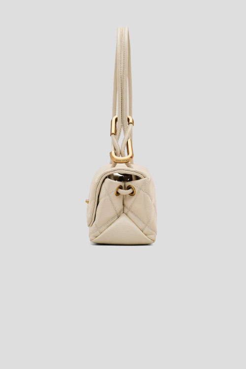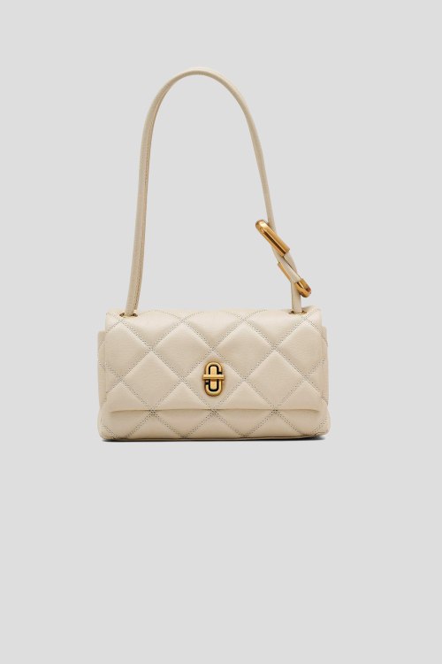 Детали: Женская кремовая кожаная сумка на плечо The Quilted Dual от Marc Jacobs (Марк Джейкобс). Стеганый дизайн, золотистая фурнитура, поворотный замок, ручка на плечо, одно отделение. Размеры: длина 22 см, глубина 11 см, высота 11 см. Высота ручки: 12 см