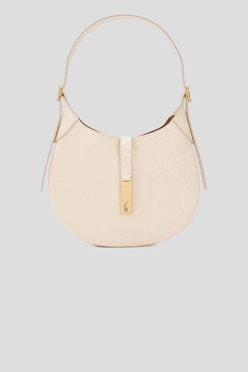 Детали: Женская кожаная сумка хобо молочного оттенка Polo ID от Polo Ralph Lauren (Поло Ральф Лорен). Модель из зернистой кожи, золотистая фурнитура, круглая ручка, застежка на магнит, одно отделение. Размеры: 26 х 3 х 26 см