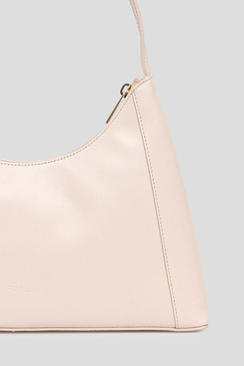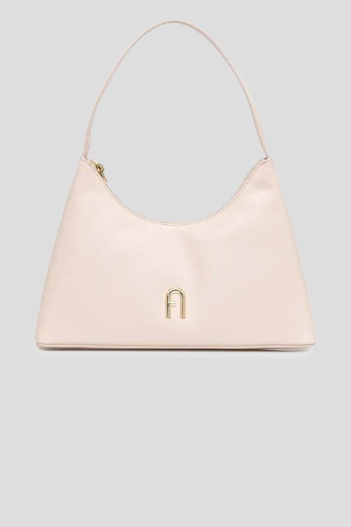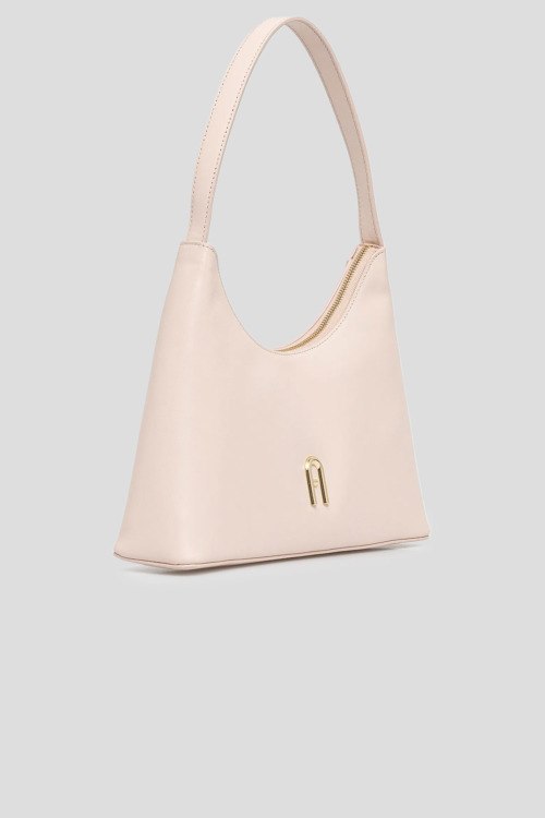 Детали: Женская пудровая кожаная сумка на плечо Diamante от Furla (Фурла). Модель из гладкой кожи, золотистая фурнитура, металлический логотип, застежка-молния, одно отделение, круглая ручка на плечо. Размеры: 32 х 22 х 8,5 см