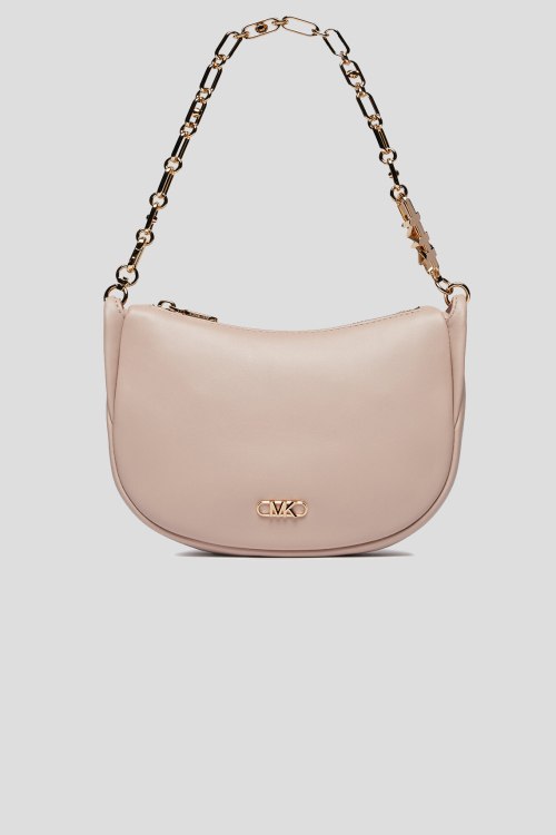 Детали: Женская пудровая кожаная сумка на плечо Kendall от Michael Kors (Майкл Корс). Модель из гладкой кожи, значок с логотипом, золотистая фурнитура, цепочка на плечо, застежка-молния, одно отделение. Размеры: 22 x 15 x 5 см