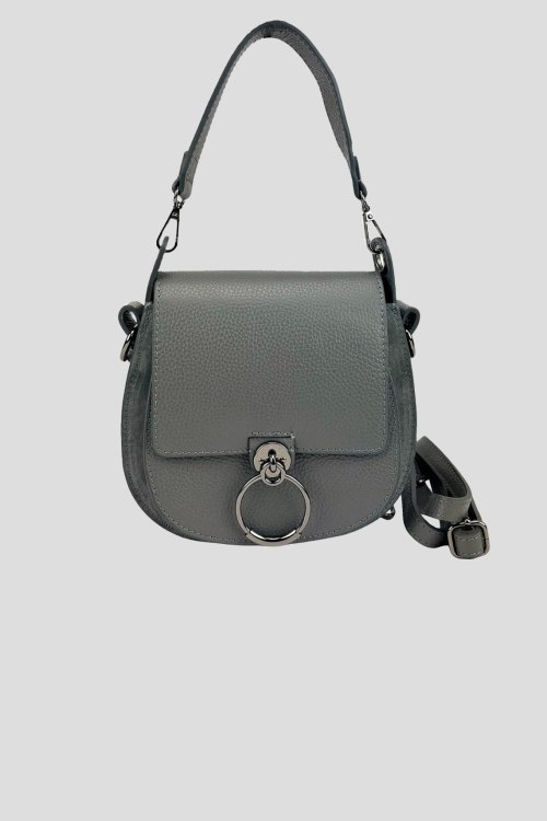 Детали: Женская серая сумка на плечо из натуральной замши от Firenze Italy (Фирензе Итали). Одно отделение, дизайн с клапаном на металлической застежке, серебристая фурнитура, в комплекте два ремешка. Размеры: 20 x 17 x 10 см.