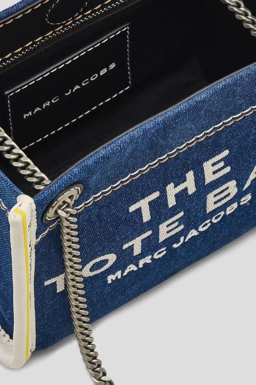 Детали: Женская синяя сумка The Denim Chain из хлопка от Marc Jacobs (Марк Джейкобс). Одно отделение, застежка на кнопку, внутренние карманы, плечевой ремень-цепочка, вышитый логотип. Высота ручки: 29 см .Измерения: 26 см х 21 см х 13 см
