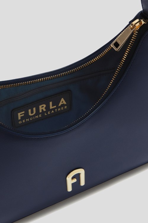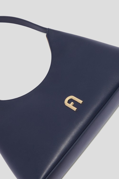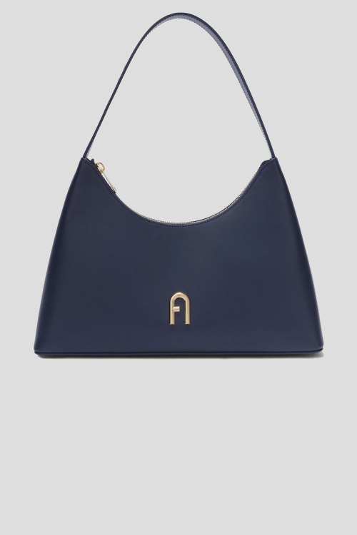 Детали: Женская темно-синяя кожаная сумка на плечо Diamante от Furla (Фурла). Модель из гладкой кожи, значок с логотипом, золотистая фурнитура, круглая ручка, застежка-молния, одно отделение. Размеры: 34 x 16 x 8 см