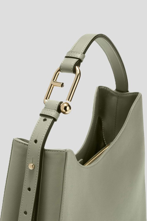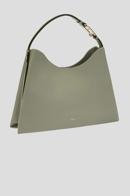 Детали: Женская оливковая кожаная сумка на плечо Nuvola от Furla (Фурла). Модель из гладкой кожи, золотистая фурнитура, застежка на магнит, два отделения, плечевой ремень. Размер: 39 x 27 x 10 см