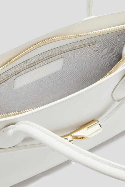 Детали: Женская белая кожаная сумка-шоппер Goccia от Furla (Фурла). Модель из глакдой кожи, золотистая фурнитура, застежка-молния, одно отделение, две ручки. Размер: 35 x 20 x10 см