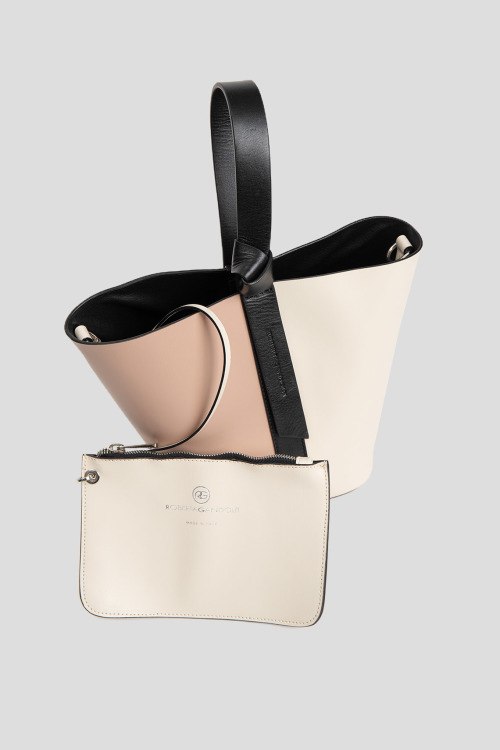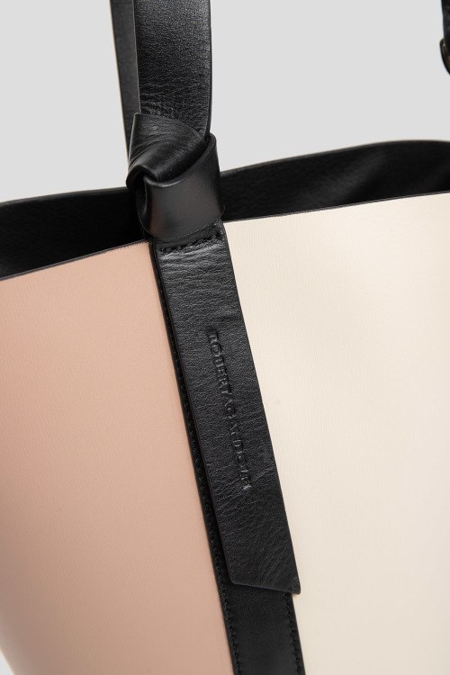 Детали: Женская молочно-бежевая сумка-шоппер из натуральной кожи от Roberta Gandolfi (Робэрта Гандолфи). Одно отделение, застежка на кнопку, верхняя ручка, съемный плечевой ремень, комбинация цветов, тиснение с логотипом бренда, внутренний карман, в комплекте косметичка. Размер сумки: ширина снизу: 17 см, ширина вверху: 30 см, высота: 21 см, глубина: 14,5 см. Размер косметички: ширина: 19 см, высота: 12 см