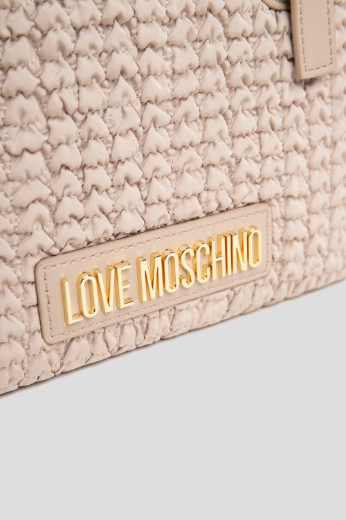 Детали: Женская бежевая сумка-шоппер из полиэстера от Love Moschino (Лав Москино). Одно отделение, застежка на молнию, внутренний карман, стеганый дизайн, две верхние ручки,металлический логотип бренда. Измерения: высота: 20 см, ширина: 30 см, высота ручек: 20 см, ширина по дну: 9 см