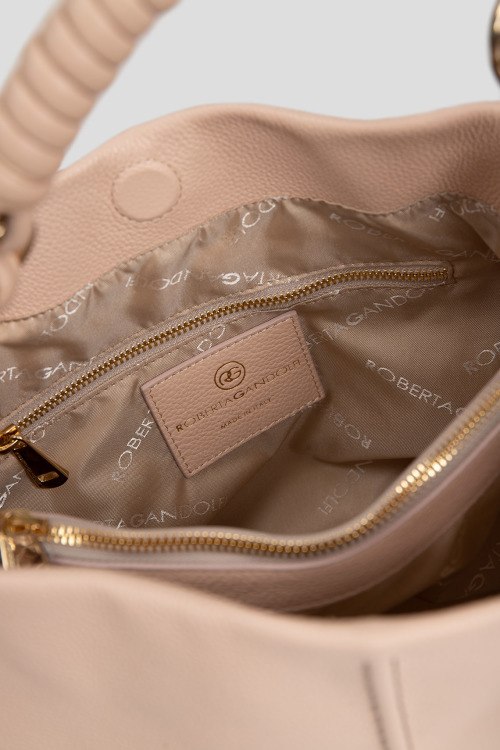 Детали: Женская бежевая сумка-шоппер из натуральной кожи от Roberta Gandolfi (Робэрта Гандолфи). Два отделения, карман-перегородка на молнии, внутренний карман на молнии, патч-лого, застежка на кнопку, верхняя плетенная ручка, съемный плечевой ремень. Измерения: ширина: 35 см, высота: 26 см, глубина: 10 см