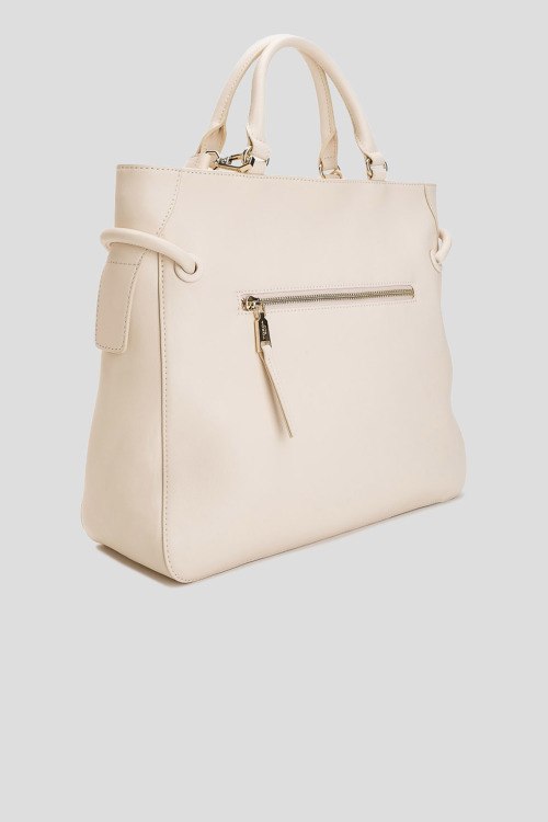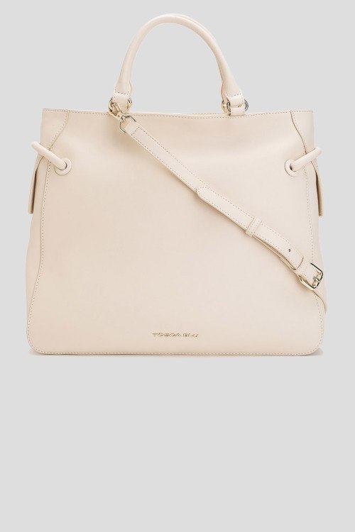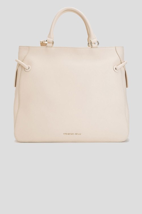 Женская сумка-шоппер молочного оттенка из натуральной кожи от Tosca Blu (Тоска Блу). Одно отделение, застежка на молнию, внутренний карман на молнии, две ручки для носки в руках, съемный плечевой ремень, логотип бренда. Размер: 36х29х13 см