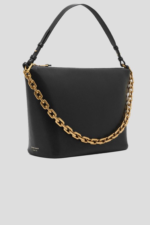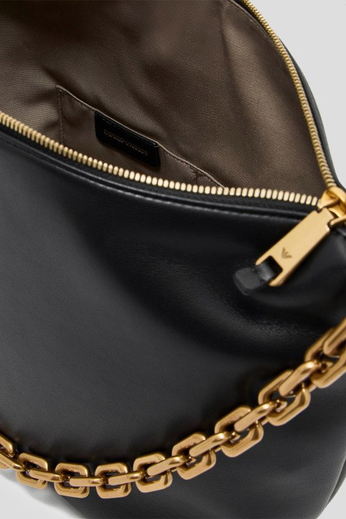 Детали: Женская черная кожаная сумка-шоппер от Emporio Armani (Эмпорио Армани). Модель из гладкой кожи, золотистая цепочка, круглая ручка, застежка-молния, одно отделение. Размеры: 40 x 28 x 15 см