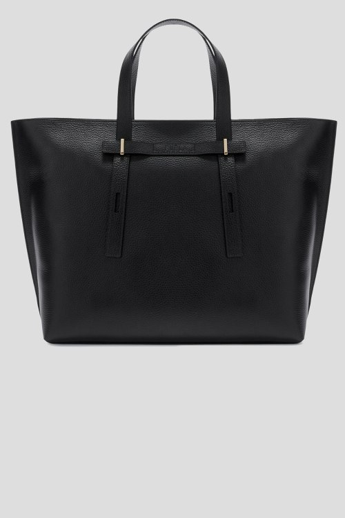 Детали: Женская черная кожаная сумка-шоппер Giove от Furla (Фурла). Модель из зернистой кожи, тиснение логотипа, золотистая фурнитура, две круглые ручки, застежка-молния, одно отделение. Размеры: 36 x 32 x 15 см