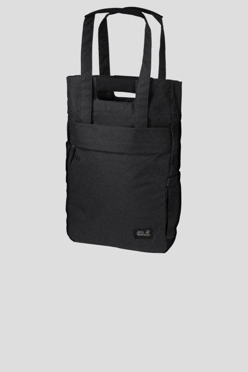 Женская черная сумка-шоппер из полиэстера от Jack Wolfskin (Джек Вольфскин). Прямоугольная форма, модель оснащена несколькими вариантами переноски: на плечи, в руке или в качестве рюкзака, FULL DULL 600D износостойкая ткань, MICRO SUEDE высококачественный синтетический материал с бархатным ощущением. Размер: 46х30х15 см, объем: 15 л, вес: 510 грамм