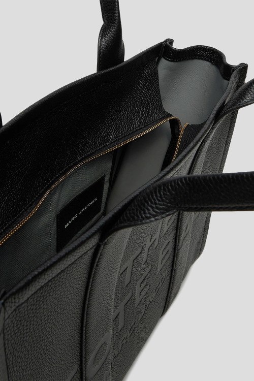 Детали: Женская черная сумка-шоппер из натуральной кожи от Marc Jacobs (Марк Джейкобс). Одно отделение, застежка на молнию, дизайн с тиснением в виде логотипа бренда, две верхние ручки. Измерения: 42 x 34 x 16 cм