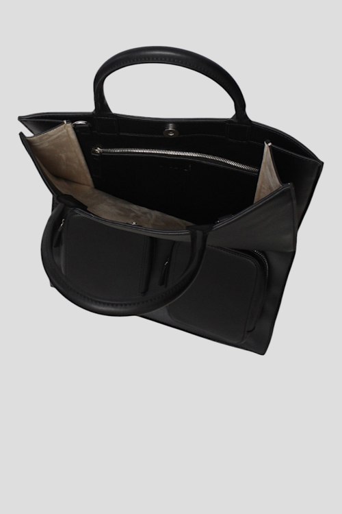 Детали: Женская черная сумка-шоппер из экокожи Accordo от Max Mara Weekend (Макс Мара Викенд). Модель из гладкой кожи, тиснение логотипа, два накладных кармана на молнии, две круглые ручки, съемный плечевой ремень, застежка на магнит, одно отделение. Размеры: 35 x 13 x 42 см