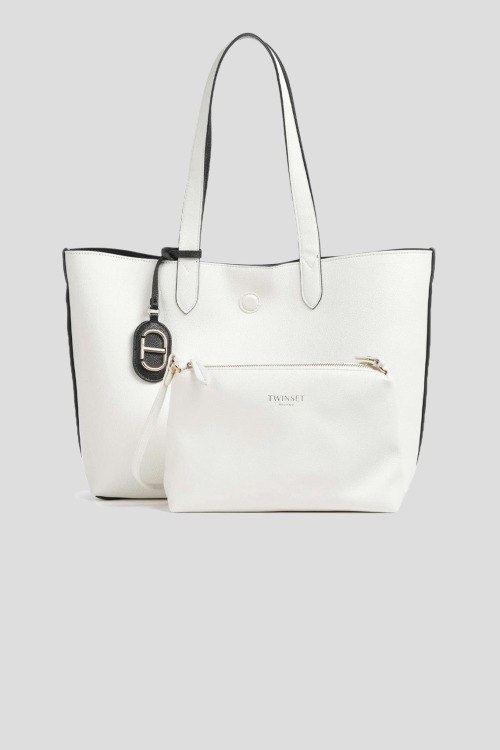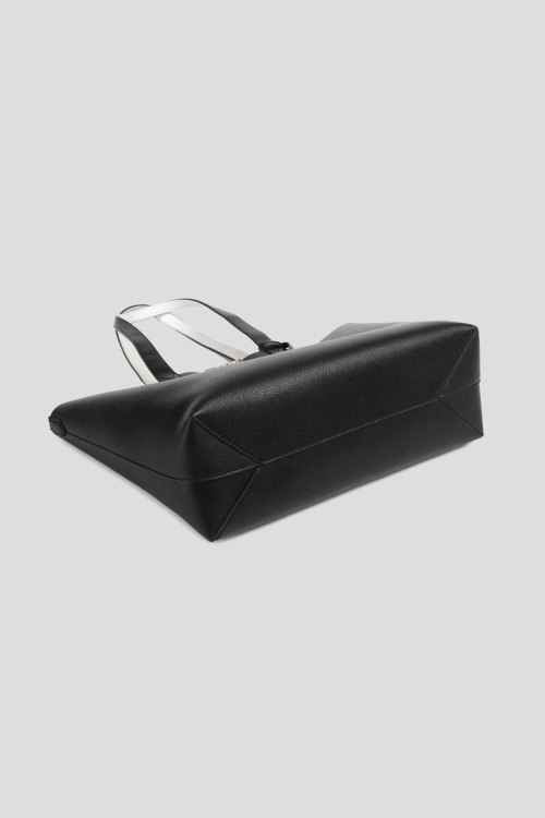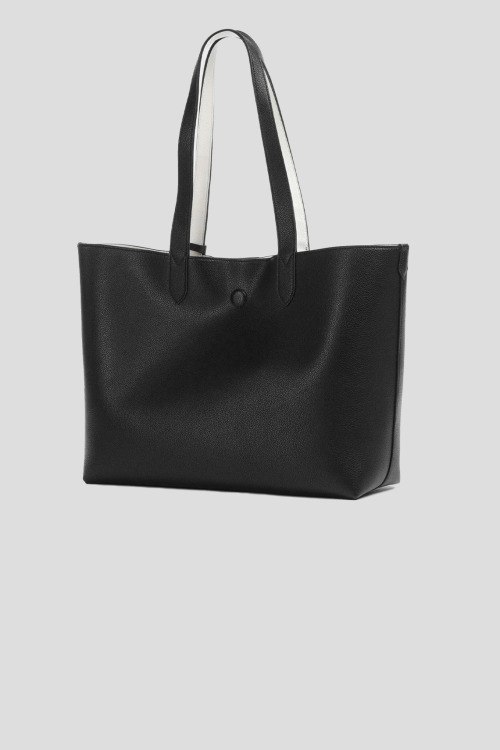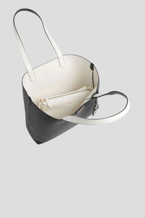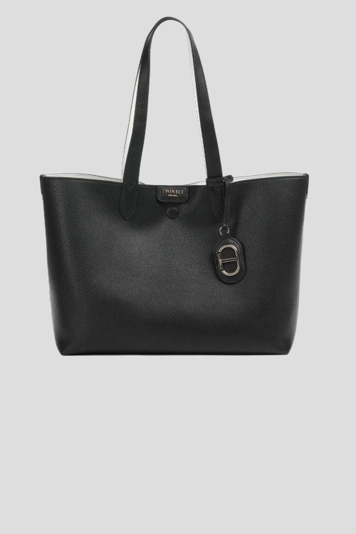 Детали: Женская черная сумка-шоппер из экокожи от TWINSET (Твинсет). Черно-белая двусторонняя модель, значок с логотипом, подвеска с логотипом, две ручки на плечо, внутренний белый кошелек, застежка на магнит, одно отделение. Размеры : 36 x 28 x 13 см