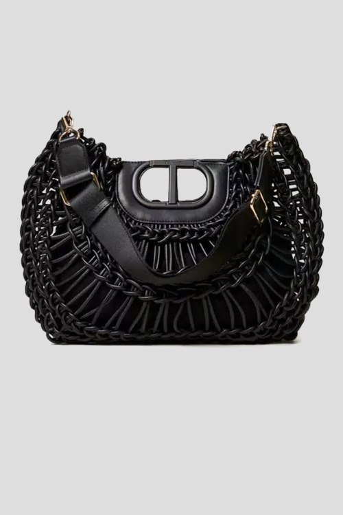 Детали: Женская черная сумка-шоппер из экокожи от TWINSET (Твинсет). Модель из гладкой кожи, плетеный дизайн, золотистая фурнитура, внутренний текстильный мешок, плечевой ремень, одно отделение. Размеры: 39 x 29 x 3 см