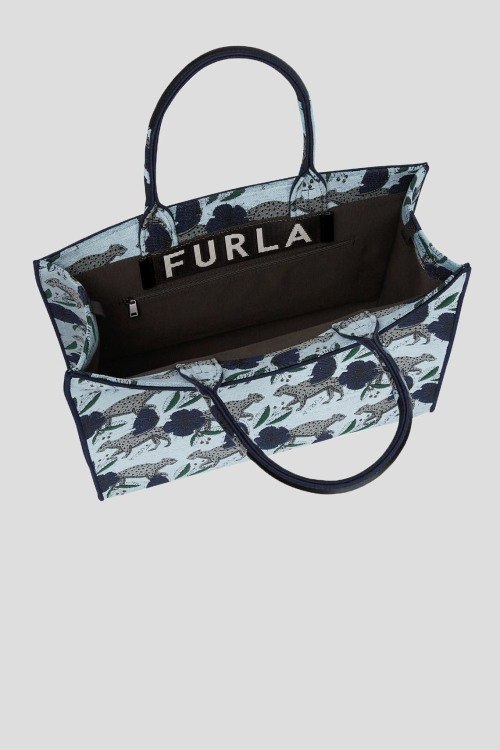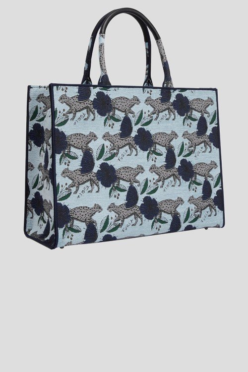 Детали: Женская голубая текстильная сумка-шоппер Opportunity от Furla (Фурла). Анималистчиный и цветочный узор, две круглые ручки, без застежки, одно отделение. Размеры: 37 см (ширина) x 29 см (высота) x 15 см (глубина)