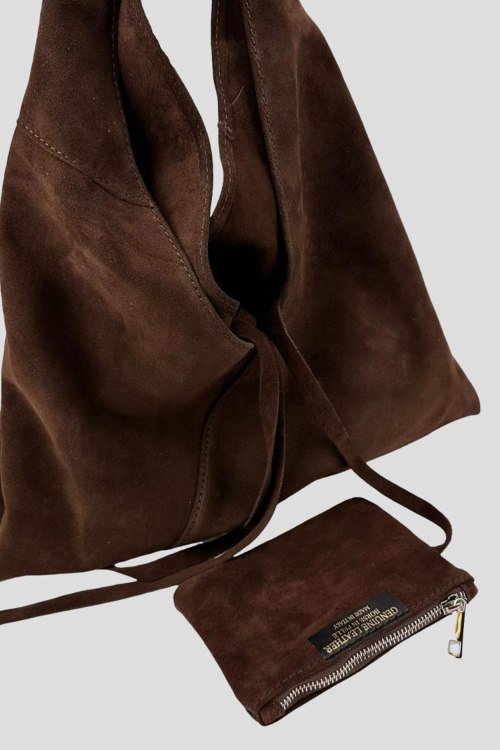 Детали: Женская коричневая сумка-шоппер из натуральной замши от Firenze Italy (Фирензе Итали). Одно отделение, модель дополнена кошельком на молнии. Измерения:47(37) x 37 x 2 см
