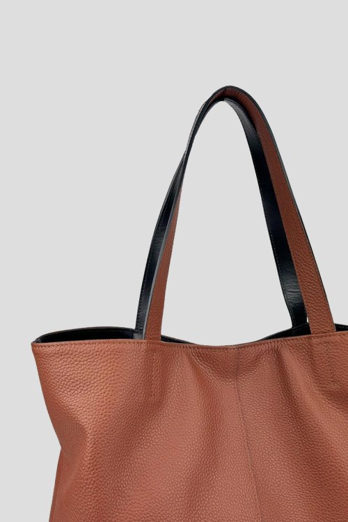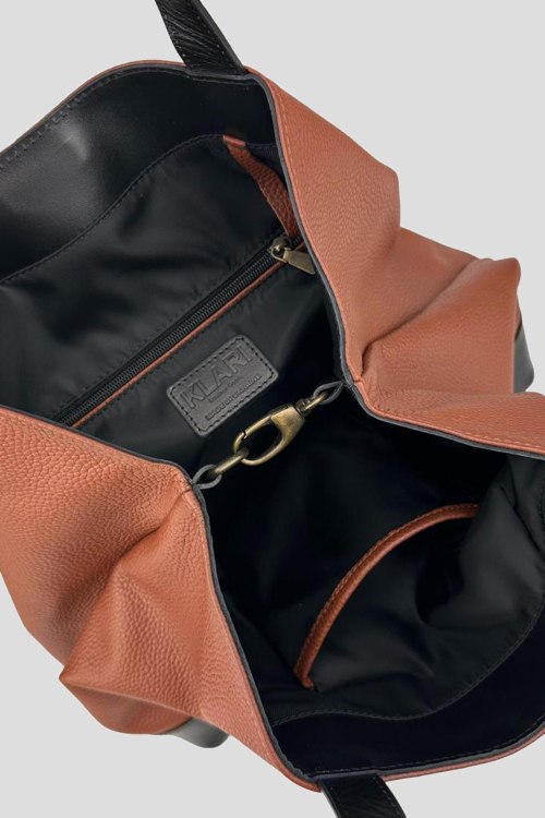 Детали: Женская коричневая сумка-шоппер из натуральной кожи от Klari (Клари). Одно отделение, внутренние карманы, внешний карман на молнии, текстильная подкладка. Размер: 49 x 40 x 12 см.