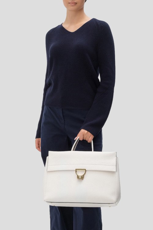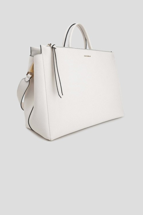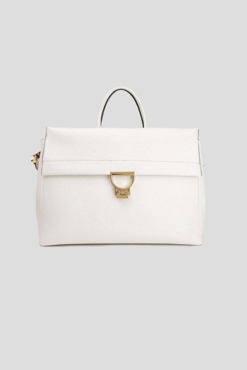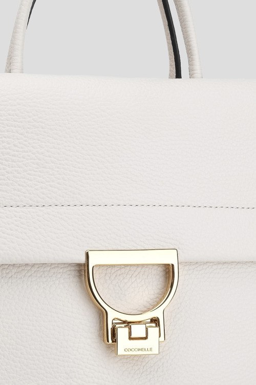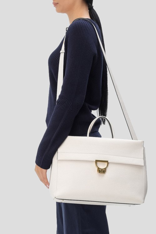 Детали: Женская кожаная сумка-шоппер молочного оттенка Arlettis от Coccinelle (Кочинелле). Модель из зернистой кожи, золотистая фурнитура, застежка на защелку, внутренняя застежка на магнит, две круглые ручки, съемный плечевой ремень, одно отделение. Размеры: 37 x 28 x 15 см