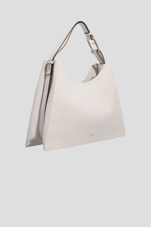 Детали: Женская сумка-шоппер Nuvola L молочного оттенка из натуральной кожи от Furla (Фурла). Одно отделение, застежка на кнопку, карман на молнии, патч-лого, металлическая фурнитура, несъемная ручка на плечо. Размер: 39x27x10 см