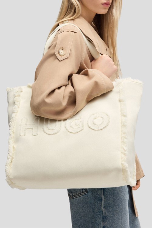 Детали: Женская кремовая текстильная сумка-шоппер Becky от Hugo by Hugo Boss (Хуго бай Хуго Босс). Нашивка с логотипом, отделка бахромой, две ручки, без застежки, одно отделение. Размеры: 34 x 37 x 17 см