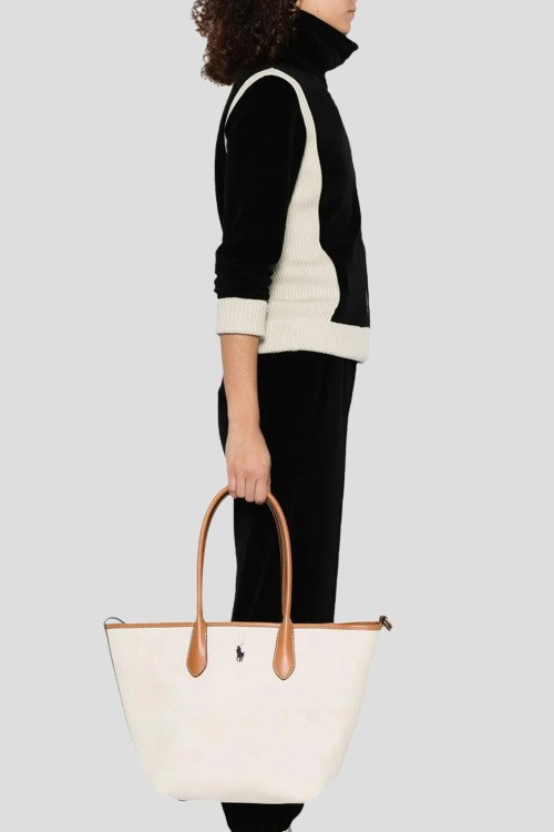 Детали: Женская сумка-шоппер молочного оттенка из хлопка от Polo Ralph Lauren (Поло Ральф Лорен). Одно отделение, внутренний карман на молнии, две верхние ручки, логотип бренда. Размеры: ширина 49 см, высота 30 см