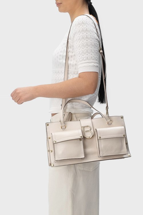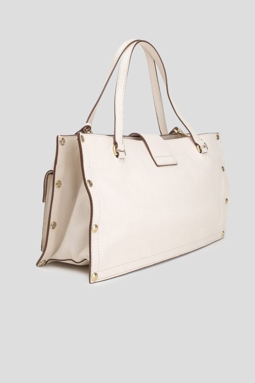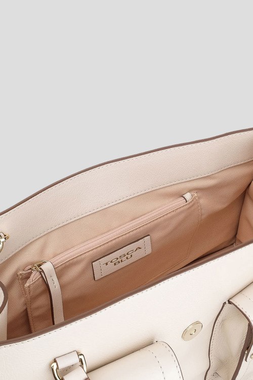 Детали: Женская кожаная сумка-шоппер молочного оттенка Elodie от Tosca Blu (Тоска Блу). Модель из гладкой кожи, значок логотипа, золотистая фурнитура, два накладных кармана, две круглые ручки, регулируемый плечевой ремень, застежка на магнит, одно отделение. Размеры: 20 х 36 х 12 см