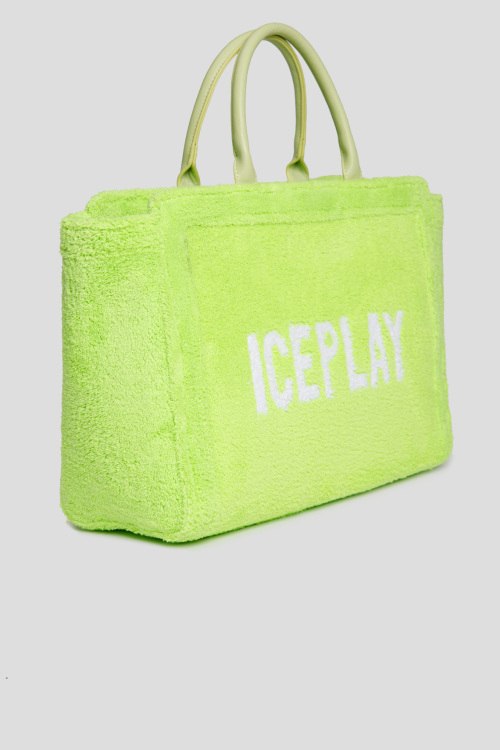Детали: Женская салатовая сумка-шоппер из мягкой плюшевой ткани от Ice Play (Айс Плей). Одно отделение, застежка на молнию, внутренний карман на молнии, спереди логотип бренда, две ручки для носки в руках. Измерения: 42x30x19 см
