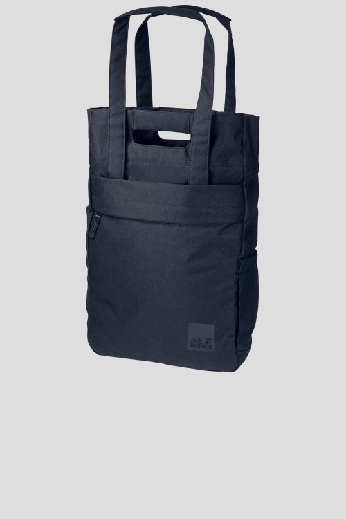 Женский темно-синий шоппер от Jack Wolfskin (Джек Вольфскин). Можно использовать его в качестве сумки через плечо, использовать короткие ремни носить его в руке или носить как рюкзак. Если вы не используете плечевой ремень, его можно осторожно убрать со стороны сумки, внутри есть карман на молнии, два потайных кармана и практичный крючок для крепления наушников или кабеля зарядного устройства, основной материал и подложка изготовлены из переработанного материала, а детали из синтетической замши придают сумке фирменный вид. Размер: 46х30х15 см, вес: 510 г, объем: 15 л