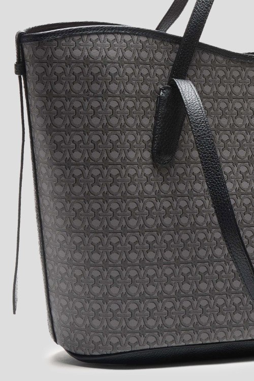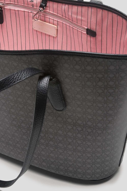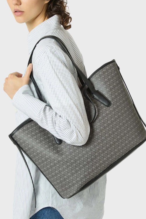 Детали: Женская темно-серая кожаная сумка-шоппер от Coccinelle (Кочинелле). Модель из гладкой кожи, узор по всей поверхности, четыре ручки, без застежки, одно отделение, розовая подкладка. Размеры: 50,5 x 31 x 16,5 см