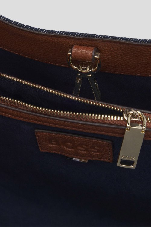 Детали: Женская темно-синяя джинсовая сумка-шоппер Anett от Hugo Boss (Хуго Босс). Нашивка с логотипом, две кожаные ручки, застежка на карабин, одно отделение. Размеры: 45 x 29 x 18 см