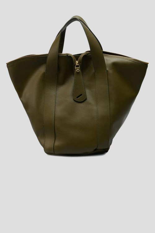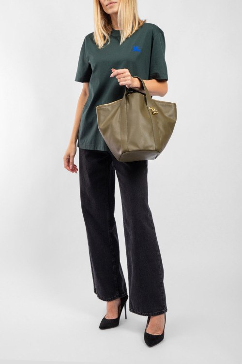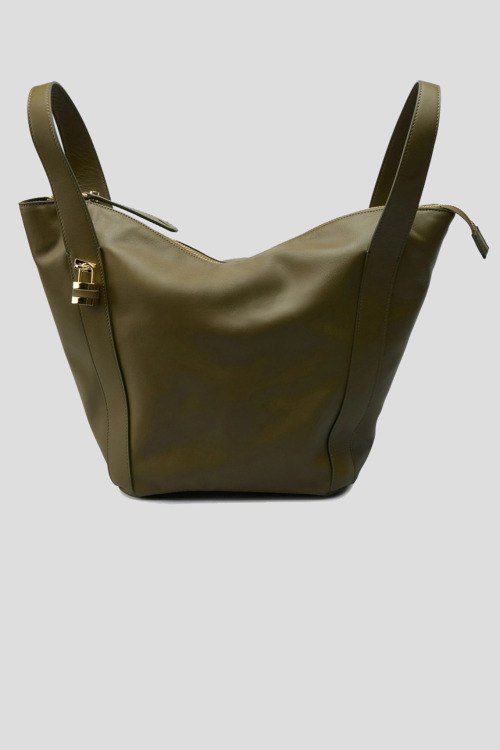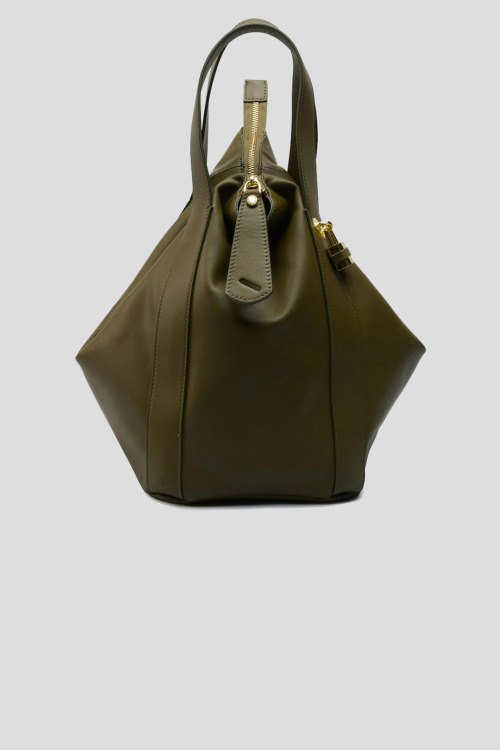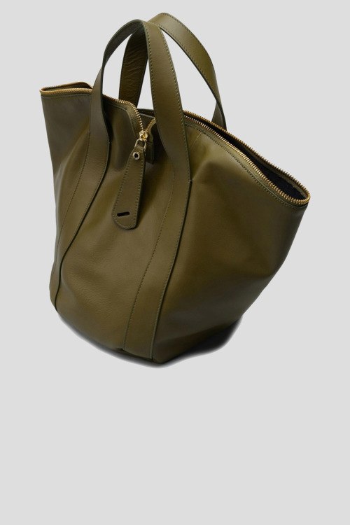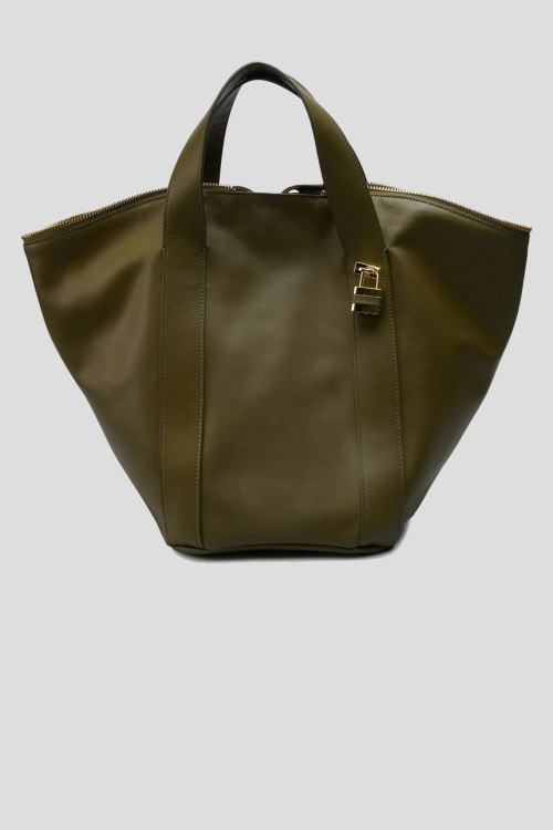 Детали: Женская оливковая кожаная сумка-шоппер Amina от Roberta Gandolfi (Робэрта Гандолфи). Модель из гладкой кожи, золотистая фурнитура, подвеска с замочком, две круглые ручки, съемный плечевой ремень, застежка-молния, одно отделение. Размеры: высота: 29 см, ширина: 40 см, высота ручек: 10 см, ширина по дну: 22 см