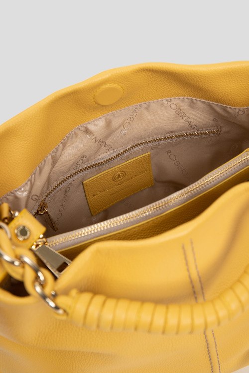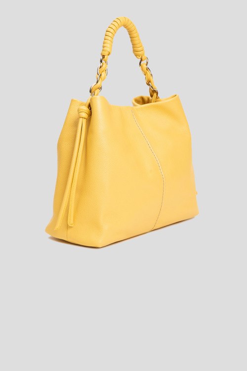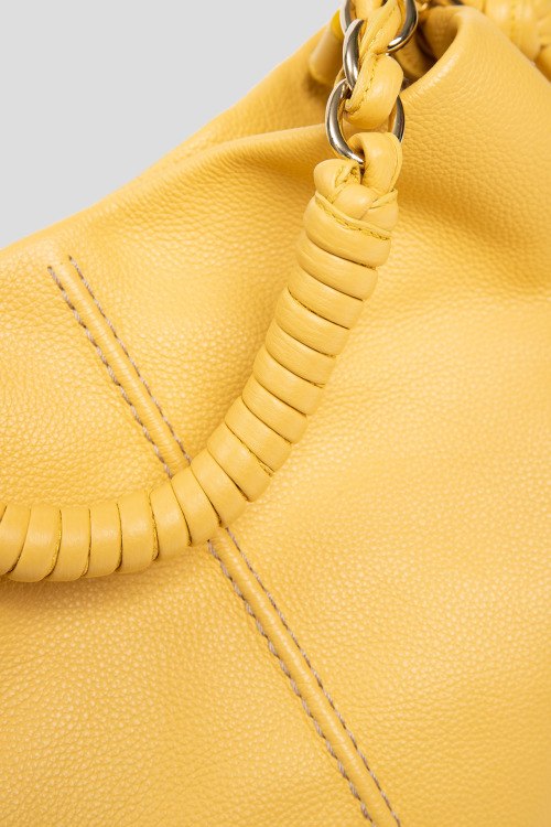 Детали: Женская желтая сумка-шоппер из натуральной кожи от Roberta Gandolfi (Робэрта Гандолфи). Два отделения, карман-перегородка на молнии, внутренний карман на молнии, патч-лого, застежка на кнопку, верхняя плетенная ручка, съемный плечевой ремень. Измерения: ширина 35 см, высота: 26 см, глубина: 10 см