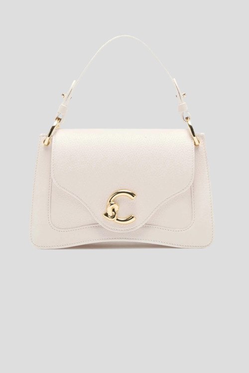 Детали: Женская белая сумка-тоут из натуральной кожи от Coccinelle (Кочинелле). Два отделения, один карман, дизайн с клапаном, металлическая фурнитура, верхняя ручка, логотип бренда. Размеры: 24x16x9 см