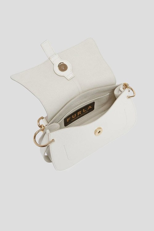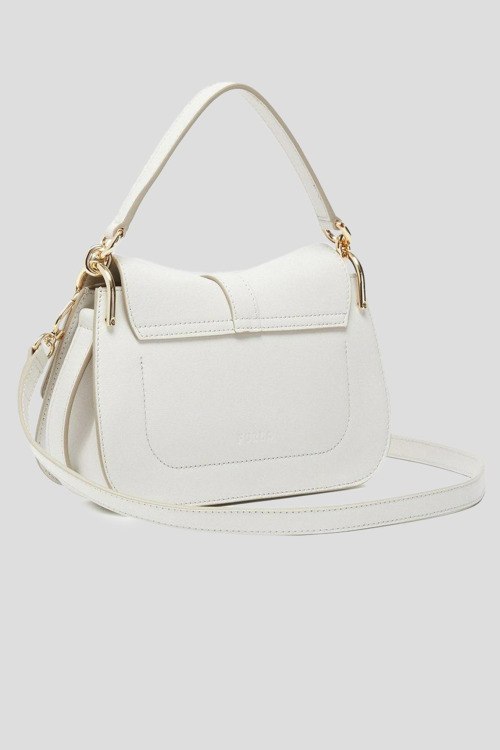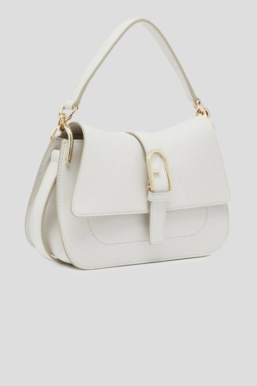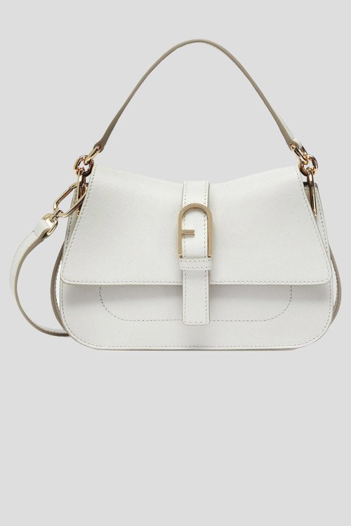 Детали: Женская белая кожаная сумка-тоут Flow от Furla (Фурла). Модель из гладкой кожи, золотистая фурнитура, металлический логотип, застежка на магнит, одно отделение, круглая ручка, съемный плечевой ремень. Размеры: 21,5 х 15 х 8 см