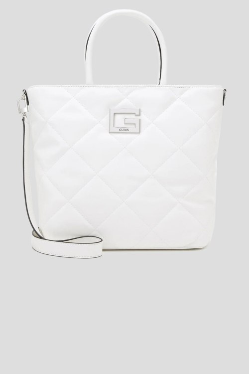 Женская белая сумка из экокожи от Guess (Гесс). Закрывается на молнию, съемный плечевой ремень, внутри: 1 отделение, в котором есть карман на молнии, карман для мобильного телефон и два кармана для мелочи. Комплектуется: транспортный ПЭ пакет, фирменная бирка Guess. Размер: 30/37x13x29 см. Высота ручки/ремня: 13/55/65 см